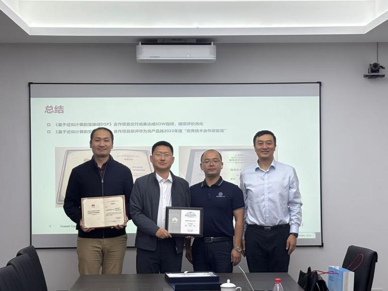 近日,我院刘伟强教授团队荣获华为光产品线2023年度优秀技术合作项目奖。华为公司光产品线研究部光算法技术Lab主任于鸿晨、华为南京研究院高校系统部部长王振飞一行莅临必威BETWAY西汉姆联为获奖团队颁奖,以表彰双方在技术合作项目中的卓越贡献和显著成果。