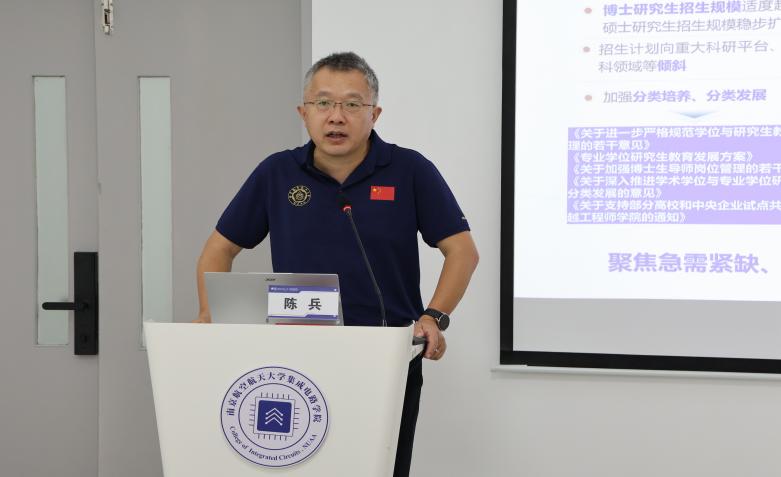 谈及研究生教育改革实践时,陈兵院长分享了近年来学校在招生、培养、导师队伍建设和教育管理等方面的改革举措。包括研究生学制调整、实施五大专项计划吸引优质生源、构建学业分流预警机制、优化学位论文评审、扩大博导选聘范围、推进研究生国际化联合培养等相关政策。陈兵院长最后指出,希望以建设国家卓越工程师学院为抓手,以小切口撬动传统必威BETWAY平台,更新新时期卓越研究生培养理念,统筹推进“教育、科技、人才”一体化发展。