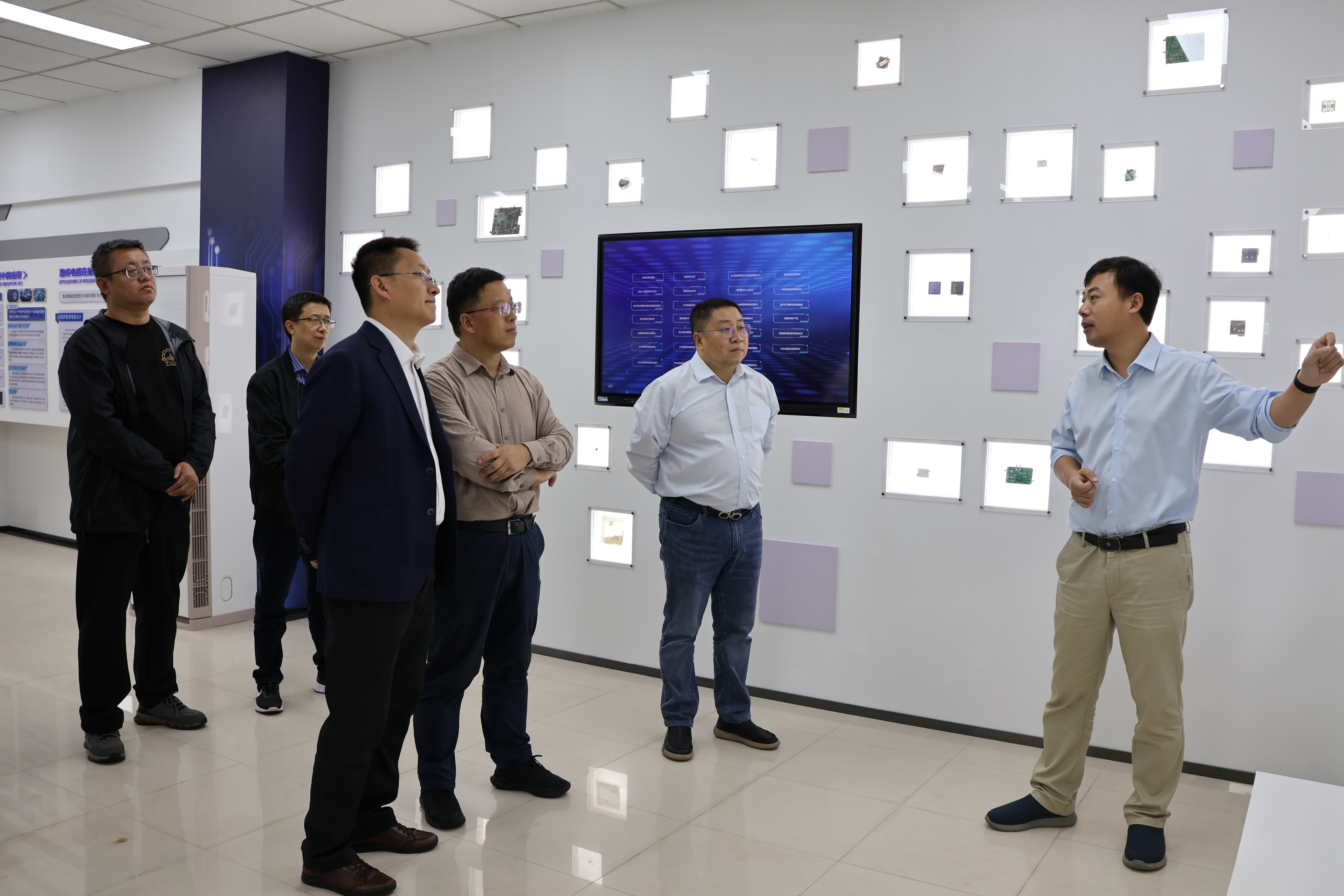 会前,王勇一行参观了我院集成电路馆,详细了解了学院的发展历程和科研成果。