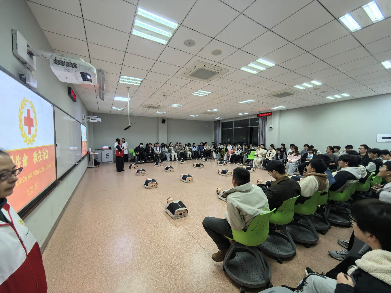 为深入贯彻落实学校关于安全工作的重要部署,进一步提高学院学生整体现场应急救护能力和水平,帮助学生树牢“珍爱生命,科学救护”意识,促进师生“学急救、会急救、敢急救”意识再提高,自救互救技能再强化,学院近期在校医院的组织下,联合学校多学院、部门以及属地红十字会,组织开展研究生、本科生应急救护培训。
