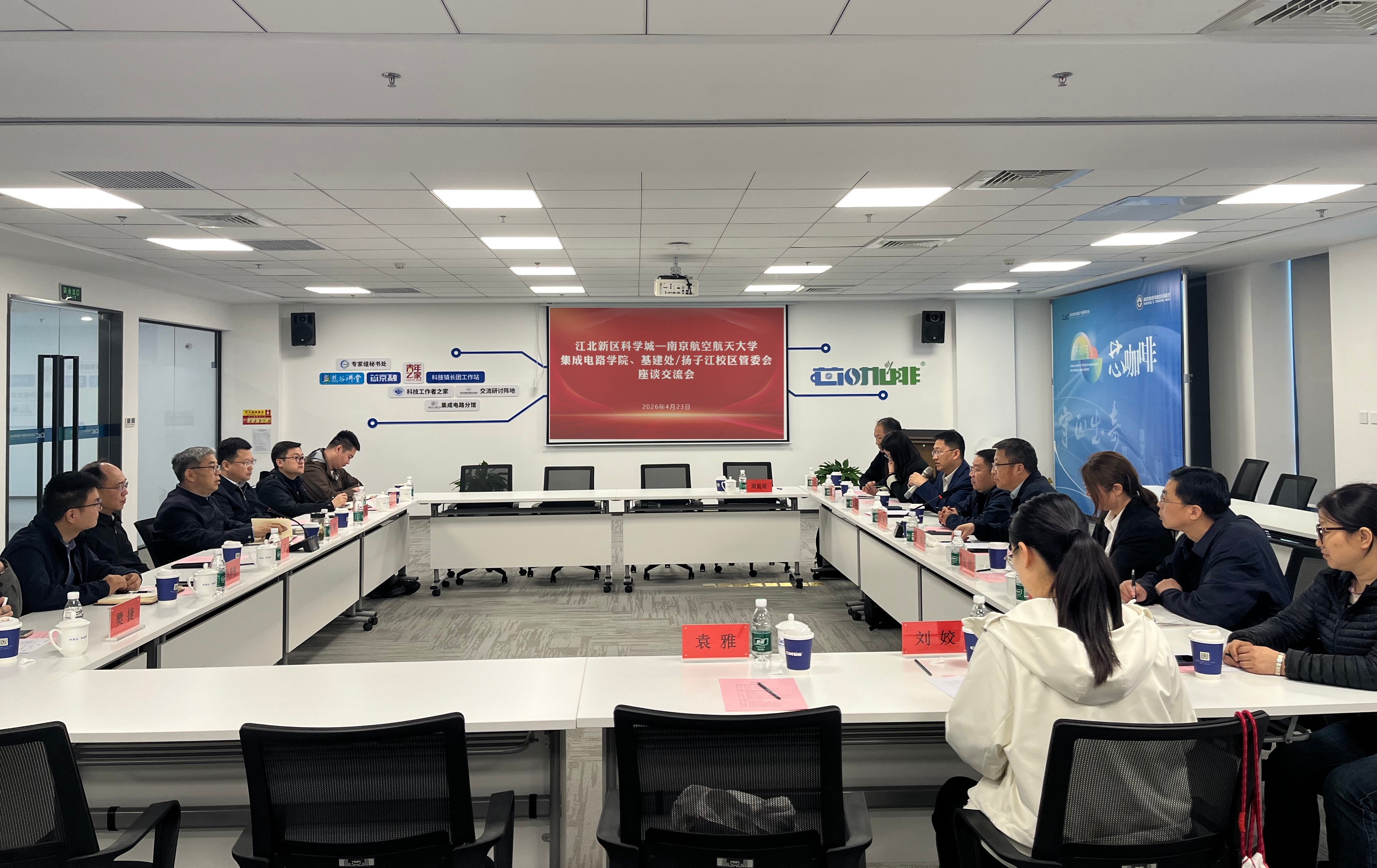 座谈交流环节,周荣详细介绍了江北新区科学城产业链党建联盟建设、产业链条布局规划及优势产业赛道发展情况,刘伟强、王炜分别介绍了必威BETWAY西汉姆联的建设发展情况和南航扬子江校区的战略定位及建设进展。与会人员聚焦校地协同、产教融合、资源对接等主题展开深度交流。